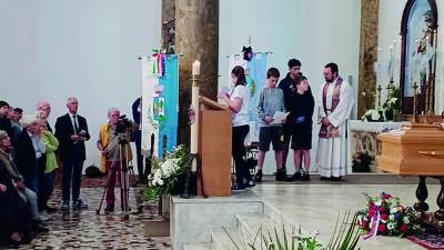 Pogreb malega Giovannija v miljski stolnici (TEDESCHI/FOTODAMJ@N) Tržaška Množičen zadnji pozdrav devetletnemu Giovanniju Spletno uredništvo | 25. nov. 2025 | 11:37