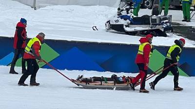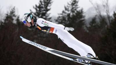 Anže Lanišek je danes tekmoval v rumeni majici (ANSA) Šport Po odpovedi druge serije zmaga Laniška in tretje mesto Prevca STA | 29. nov. 2025 | 17:05