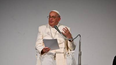 Papež Frančišek v Kongresnem centru (FOTODAMJ@N) Tržaška Papež Frančišek spregovoril o demokraciji Urška Petaros | 7. jul. 2024 | 10:01
