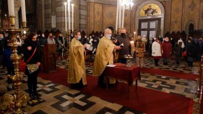 Predbožična sveta maša tržaške srbsko-pravoslavne skupnosti v cerkvi sv. Spiridona (FOTODAMJ@N) Tržaška Blagoslov badnjaka in slame ter molitev Valentina Sancin | 6. jan. 2021 | 20:36