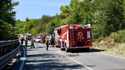 Prizorišče požara (FOTODAMJ@N) Tržaška Požar pri Štivanu na cesti skozi Dol pogasili (VIDEO) Spletno uredništvo | 11. avg. 2025 | 13:15