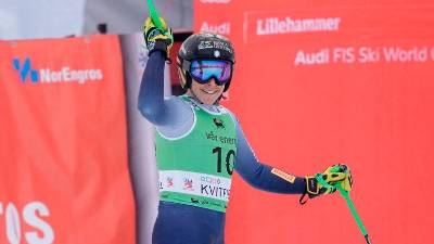Veselje Federice Brignone po današnjem uspehu (ANSA) Šport Federica Brignone zmagovalka v Areju STA | 9. mar. 2024 | 15:27