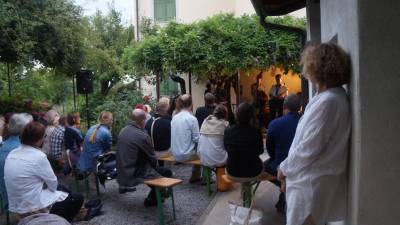 Večer Poezijazz je potekal na Kosovelovi domačiji v Tomaju ( Gabrijel Milič ) Kultura Poezija, jazz in Kosovel Martin Lissiach | 20. jul. 2021 | 13:37