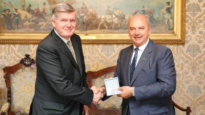Veleposlanik Republike Slovenije v Italiji Tomaž Kunstelj in župan Občine Trst Roberto Dipiazza( OBČINA TRST ) Tržaška Veleposlanik Tomaž Kunstelj prejel srednjeveški pečat Spletno uredništvo | 23. jun. 2022 | 15:47