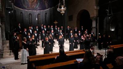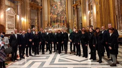 Projektni zbor ZCPZ iz Trsta v baziliki dvanajstih apostolov v Rimu (ZCPZ TRST/FACEBOOK) Še V Rimu z mašo obeležili 30-letnico Slovenije Ivan Žerjal | 10. dec. 2021 | 19:57