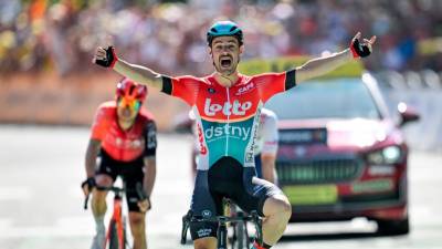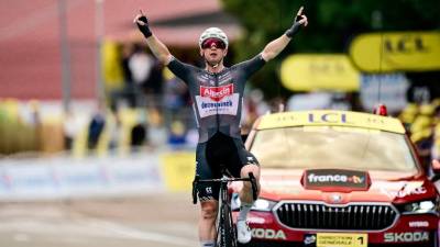 Današnji zmagovalec Nizozemec Thymen Arensman (LE TOUR DE FRANCE/FACEBOOK) Šport Z današnjim tretjim mestom Pogačar zapečatil končno zmago STA | 25. jul. 2025 | 17:51