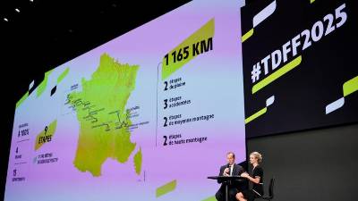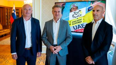 Predsednik vlade dr. Robert Golob, Pavel Marđonović, predsednik Kolesarske zveze Slovenije, in Bogdan Fink, direktor kolesarske dirke Po Sloveniji (VLADA RS/BOR SLANA/STA) Šport Premier Golob na letošnji Tour s predlogom treh tras za leto 2029 STA | 18. jul. 2025 | 17:29