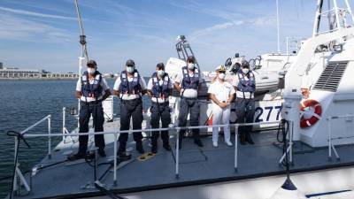Hibridna ladjica pred tržaškim Velikim trgom( Finančna policija ) Tržaška Tržaška finančna policija po novem s hibridno ladjo Spletno uredništvo | 9. sep. 2025 | 17:57