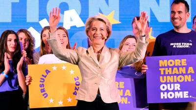 Ursula von der Leyen je razglasila zmago (ANSA) Še Von der Leyen razglasila zmago, skrajno desne stranke pa se vzpenjajo Spletno uredništvo | 10. jun. 2024 | 0:03