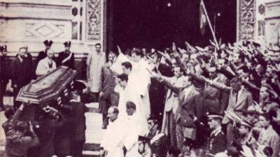 Iztegnjene desnice na pogrebu Giovannija Gentileja (WIKIPEDIA) Še Giovanni Gentile – ugleden filozof ali rabelj slovenskega šolstva? Jaruška Majovski | 16. apr. 2024 | 14:08