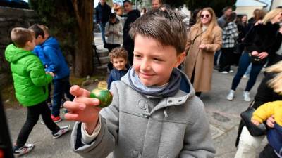 Najmlajši so si z meti kovanca skušali izboriti pirh( FOTODAMJ@N ) Tržaška Tudi letos so s kovanci obmetavali pirhe Spletno uredništvo | 21. apr. 2025 | 18:59