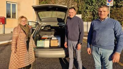 Z leve Franka Padovan, David Stupica in Marjan Drufovka Goriška V Ljubljani darujejo Števerjansko vino Eva Skabar | 3. feb. 2024 | 9:51