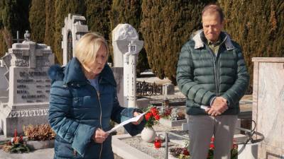 Marilka Koršič in Bernard Spazzapan pred grobom Bratuževih (BUMBACA) Goriška Spomin na Bratuža združuje različne ljudi William Prinčič | 17. feb. 2022 | 9:52