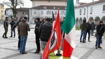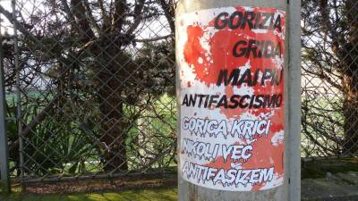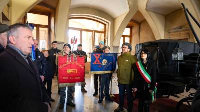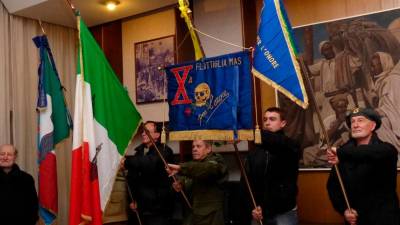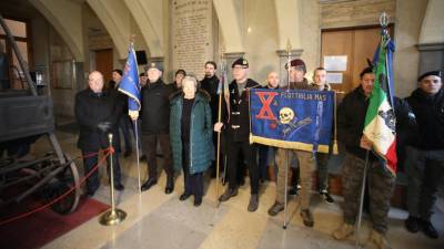 Predstavniki veteranske organizacije X Mas med eno izmed preteklih svečanosti v veži mestne hiše (BUMBACA) Goriška »Ideje in simbole črpajo iz fašizma« Danjel Radetič | 21. jan. 2023 | 6:25