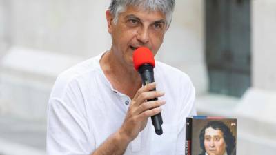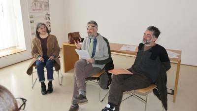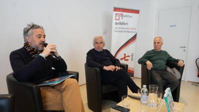 Patrizia Dughero z grafično novelo o deportiranki Anni Ragusa; ob njej Simone Cuva in Giovanni Fierro (BUMBACA) Goriška Most med slovenskim in italijanskim založništvom Marko Marinčič | 3. apr. 2024 | 8:21