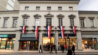 Jugoslovanske zastave na pročelju stavbe na Verdijevem korzu v Gorici (THOMAS LENARDI) Goriška »Jugoslovanske zastave legitimni simbol spomina na borce IX. korpusa« Spletno uredništvo | 2. apr. 2025 | 17:16