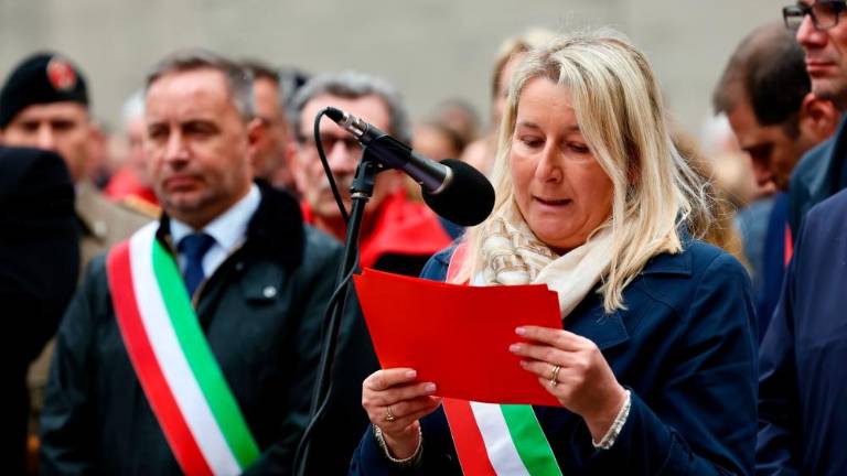 Po kontestiranem tržaškem županu Dipiazzi je množico v Rižarni nagovorila zgoniška županja Monica Hrovatin. Njen dvojezični nagovor so večkrat prekinili aplavzi. Njene besede so bile zelo jasne: 25. april bi moral biti praznik za vse državljane Italije, ki se je rodila iz odporništva. Mlade je pozvala k aktivni participaciji, k bitki za pravičnost in okolje ter jih pozvala, naj ne pozabijo na zgodovinsko dejstvo: kdor se je boril proti nacifašizmu, je bil na pravi strani zgodovine.