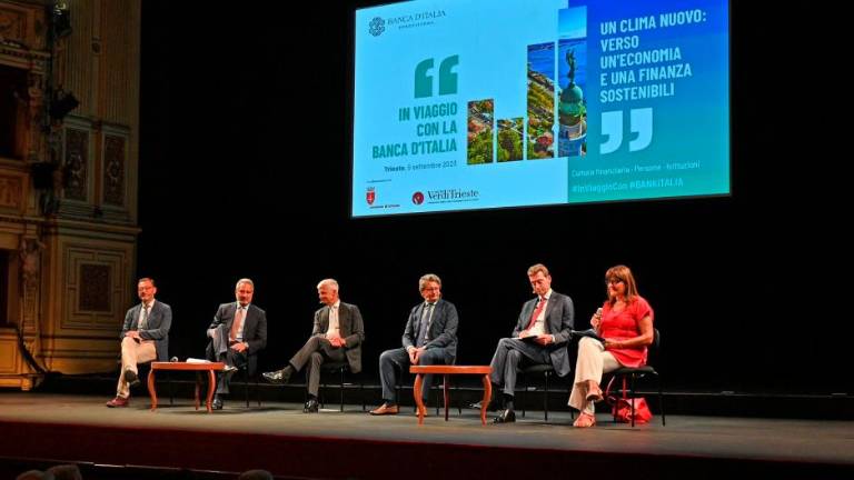 Tržaška etapa Banke Italije, ki se je pred tem ustavila v Bariju, Genovi in Palermu, je postregla tudi z okroglo mizo, na kateri so menedžerji najpomembnejših tržaških zasebnih in javnih podjetij govorili o trajnostni ekonomiji in financah. Polno dvorana gledališča Verdi sta uvodoma nagovorila župan Roberto Dipiazza in predsednik deželne vlade Massimiliano Fedriga. Zbrane je pozdravil tudi direktor tržaškega sedeža Banke Italije Marco Martella.