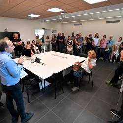 Raziskovalec Matteo Perissinotto je spregovoril o pomenu današnjega dne in poudaril, da so se organizatorji zelo potrudili, da bi bilo odprtje ravno na dan, ko je pred 80 leti iz Trsta odpotoval prvi vlak deportirancev. Razstavo so kustosi, med njimi sta tudi zgodovinarja Tullia Catalan in Franco Cecotti, zasnovali v več delih, ki predstavljajo, poleg deportirancev in deportacije, tudi zatiralce, ki so lovili Jude, in politične deportirance.