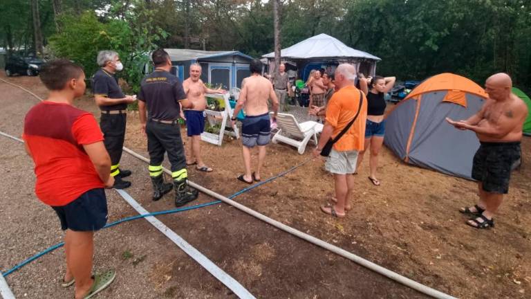 Zaradi močne in nagle razširitve požara so pristojne oblasti odredile evakuacijo kampinga v Sesljanu. Približno tisoč gostov selijo v nabrežinsko telovadnico. Devinsko-nabrežinski podžupan Mitja Petelin je zaprosil občane za pomoč in jih povzal, naj prinesejo vodo in hrano ter najnujnejše v telovadnico.