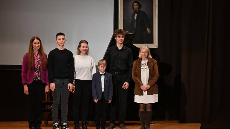 Za klavir je nato sedla Julija Cante iz razreda Beatrice Zonta, za njo pa Goran Košuta iz razreda Claudie Sedmach. Prvi del prireditve sta sklenila s štiriročnim nastopom in skladbo Marec Bojana Glavine.