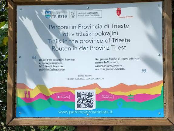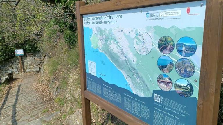 Pred dnevi sta pešpot za Miramar obogatili dve novi tabli, nameščeni na razgledišču s čudovitim pogledom na Tržaški zaliv in na Miramarski grad. Za razliko od prejšnjih sta res zelo lepo oblikovani, z zemljepisnimi imeni krajev v italijanskem in slovenskem jeziku ter z zgodovinskimi opombami in zapisi o naravnih zanimivostih poti v štirih jezikih, po vrsti v italijanskem, slovenskem, angleškem in nemškem. Tabli je dala postaviti Ustanova za decentralizaciijo iz Trsta, ki deluje v sklopu Dežele Furlanije - Julijske krajine, in sodita v okvir načrta za obnovo in vzdrževanje obstoječih pešpoti. Na prvi, večji, je naslikan zemljevid območja pešpoti Čedaz-Kontovel-Miramar. Druga, manjša, tabla nekaj metrov stran od prve opozarja mimoidoče na poti v tržaški pokrajini. Pod naslovom jo bogati druga kitica Pesmi s Krasa Srečka Kosovela v slovenskem izvirniku in italijanskem prevodu.