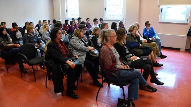 Na Katedri za slovenski jezik in književnost Oddelka za humanistične študije Univerze v Trstu so v svojo sredo sprejeli ministra in dijake, pozdrav v dvorani Arduino Agnelli pa je posredoval predstojnik slovenistike, profesor Miran Košuta: »Kot je dejal Ivan Cankar, Ljubljana je srce slovenstva, Trst pa pljuča. Na oddelku se trudimo, da bi nudili čim bolj popolne vsebine in usposobili sloveniste za širši evropski prostor, s programom, ki omogoča popolno univerzitetno izobrazbo.«