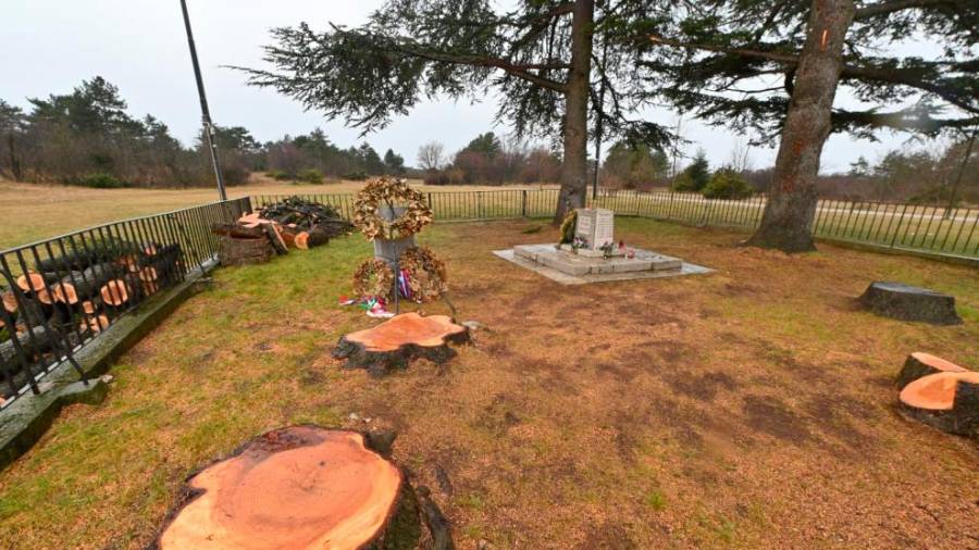 Na bazovski gmajni je v teh dneh zazevala še večja praznina, ki pa bo menda samo začasna. Potem ko so z območja pod Kokošjo odstranili spomenik štirim antifašistom, ustreljenim leta 1930 po prvem tržaškem procesu (Ferdu Bidovcu, Franju Marušiču, Zvonimirju Milošu in Alojzu Valenčiču), ki ga je 15. januarja poškodovala burja, je Občina Trst na prošnjo Odbora za proslavo bazoviških junakov dala posekati dve od štirih visokih libanonskih ceder, ki so stale ob spomeniku.