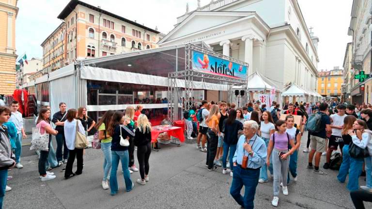 Pred tem se bo ob 9.30 v Slofestovem šotoru s pesnikom Markom Kravosom pogovarjal Gianluca Paciucci. Ob 12. uri bo Martin Lissiach gostil pogovor o »mejah identitete« z radijskim voditeljem Massimom Cirrijem. Ob 15.30 bodo predstavili projekt dramatizacije zbirke novel Marghet Mazzoni o škedenjskih ženskah. Ob 16.30 bodo trije »novi Tržačani«, Saša Gerčar, Aleš Košak in Peter Šušnjar, v pogovoru s Poljanko Dolhar spregovorili o tem, zakaj so Trst izbrali za svoj dom. Dogajanje na Trgu sv. Antona se bo ob 18. uri zaključilo s skupnim nastopom zamejskih godb.