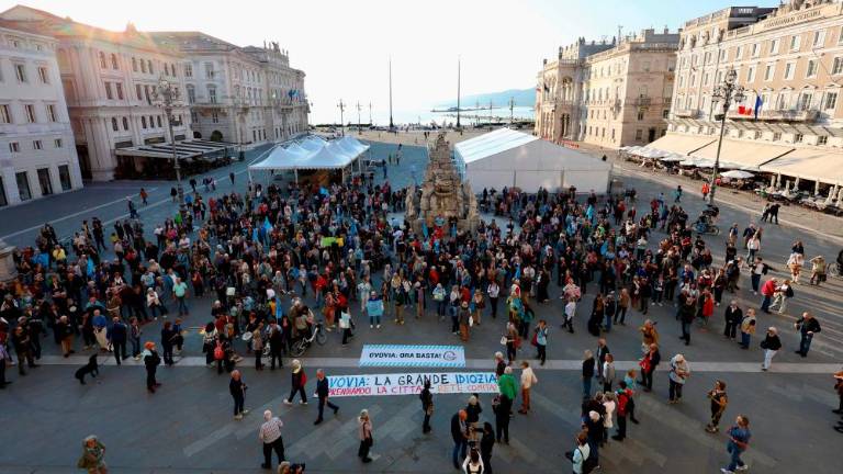 Pod mestno hišo na Velikem trgu se je danes pod večer zbrala večja množica ljudi, da bi izrazila nasprotovanje gradnji žičnice, ki bi povezovala Staro pristanišče s Krasom. Shod je priredil odbor No ovovia ob zasedanju mestnega sveta, ki sicer danes obravnava druge argumente, medtem ko vprašanja žičnice danes ni na dnevnem redu.
