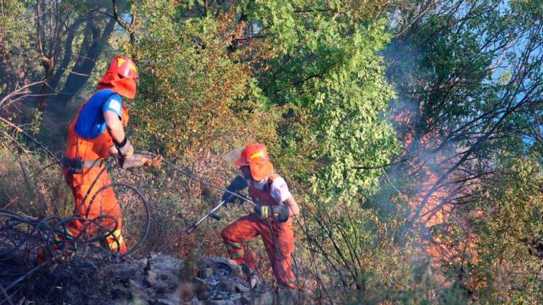Ko je že kazalo, da je požar pogašen in so namakali požarišče, je zapihal veter in oživil plamene, ki so ogrozili navzoče, ti so se morali naglo umakniti. Gašenje se tako nadaljuje. Priletel je helikopter, ki zajema vodo pred barkovljansko riviero in z njo gasi požar.