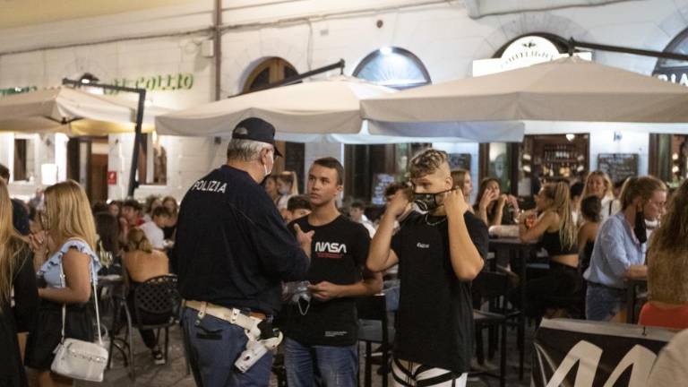 Maske na bradah, manj kot metrska medsebojna razdalja in množično zbiranje na ulicah. Živahno in brezskrbno nočno življenje se na tržaških ulicah nadaljuje tudi prvi konec tedna po sprejemu novega odloka italijanskega zunanjega ministra za zdravje Roberta Speranze, ki je dan po velikem šmarnu odredil prepoved delovanja diskotek in nočnih klubov na prostem (v zaprtih prostorih je bilo plesanje prepovedano že prej). Zaradi naraščanja števila okužb z novim koronavirusom je minister na javnih mestih, kjer se pojavlja možnost množičnega zbiranja, med 18. uro popoldne in 6. uro zjutraj uvedel tudi obvezno uporabo mask.