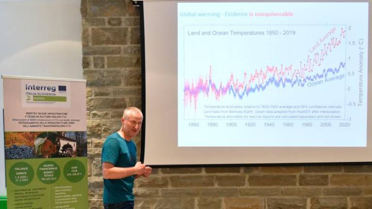 Predavanje o taljenju ledenikov je glaciolog Renato Colucci, raziskovalec Inštituta za polarne znanosti Državnega raziskovalnega sveta CNR ter profesor glaciologije na Univerzi v Trstu, na dobro obiskanem sredinem večeru v Sprejemnem centru v Boljuncu uvedel z grafičnim prikazom dnevnih temperatur dan prej v Evropi. Skoraj celotna Evropa je bila v torek obarvana rdeče ali oranžno, opazne so bile številke od 25 do 30. Skoraj povsod v Evropi se je živo srebro povzpelo nad 25 stopinj Celzija, ponekod celo do 30 stopinj Celzija. Predavatelj je prisotne vprašal, ali se jim zdi normalno, da je temperatura v drugem tednu maja tako visoka. Odgovor je bil seveda negativen. »Gre za temperature, ki bi bile normalne v juniju ali morda celo v juliju,« je nadaljeval, »četudi to še ni dokaz o klimatskih spremembah, pač pa gre le za običajne variacije znotraj rednega vremenskega dogajanja, problem pa je, da so slednje vse pogostejše.« Temperaturni graf, ki ga je prikazal v nadaljevanju, je bil še bolj očiten. Do osemdesetih let preteklega stoletja so bile temperaturne spremembe uravnovešene in umirjene. Pojavljale so se sicer oscilacije, povezane z astronomskimi ali drugimi faktorji. Krivulja pa se je v začetku devetdesetih let začela naglo in nezadržno vzpenjati. O tem v znanstvenem svetu ni več nikakršnega dvoma, ker gre za dejstva. Tudi ni nikakšrnega dvoma, da gre za posledico človeškega ravnanja oz. nezadržnega izpuščanja toplogrednih plinov v ozračje. Otroci, ki so se rodili okrog leta 2000 zaradi posledic klimatskih sprememb že ne vedo več, kaj pomeni normalna zima, takšna, kot so jo podoživljale generacije zdajšnjih vsaj štirideset- ali petdesetletnikov. Sneg v nižinah, ki je bil tedaj običajen, je zdaj le izjemen pojav, je povedal. Stanje se iz leta v leto slabša, možno pa je še ukrepati in zaustaviti nenehen vzpon temperature, o čemer razpravljajo znanstveniki.
