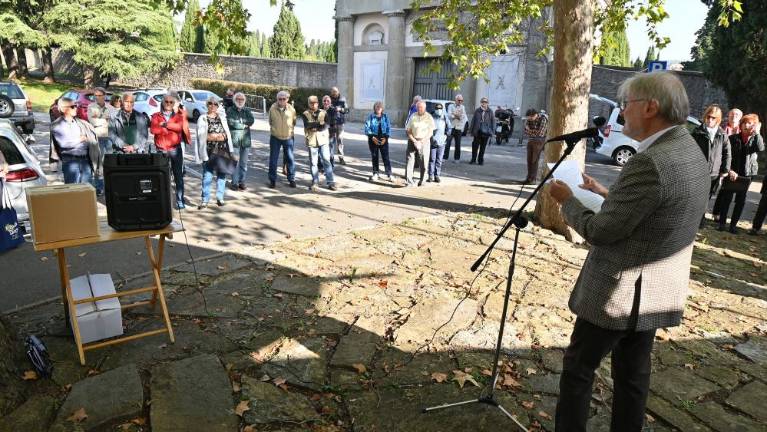 Slavnostni govornik je bil novinar in pisatelj Dušan Jelinčič. Spomnil je na dolgo in mučno pot, ki jo je bilo potrebno opraviti za postavitev – šele pred dvajsetimi leti – tega edinega spomenika padlim v naraodnoosvobodilni borbi znotraj tržaškega mestnega območja. Spomenika 130 Slovencem in Italijanom iz Škednja, od Sv. Ane in s Kolonkovca, ki so darovali svoje življenje za svobodo, zato da bi njihovi sinovi živeli v boljšem svetu.Nujno pa je zgodovinsko preteklost povezal tudi s sedanjo stvarnostjo. Preradi, je poudaril, v svojem vsakdanjem življenju pozabljamo, da mir, ki so nam ga izborili starši, ni nekaj večnega in se je treba zato zanj stalno boriti in zavzemati. »V današnjih medlih, tekočih časih radi pozabljamo dejstva, ker nas ta postavljajo pred ogledalo naših odgovornosti.« Od leta 1945, je spomnil, se je po svetu zvrstilo kakih 300 vojn, in tudi vojna v Ukrajini, »ki je logična posledica samouničujočih izbir svetovnih velesil.« Edini realen v nebo vpijoči krik ljubezni in človekovega razuma, je papežev, je dejal, ki vabi k prekinitvi vojne, ki pa se lahko konča le s pogajanji in ne z vse večjim grmadenjem orožja. Ker orožje ne prinaša miru.