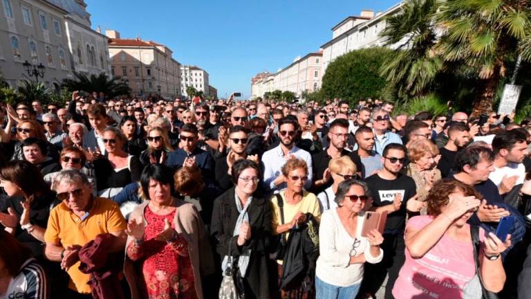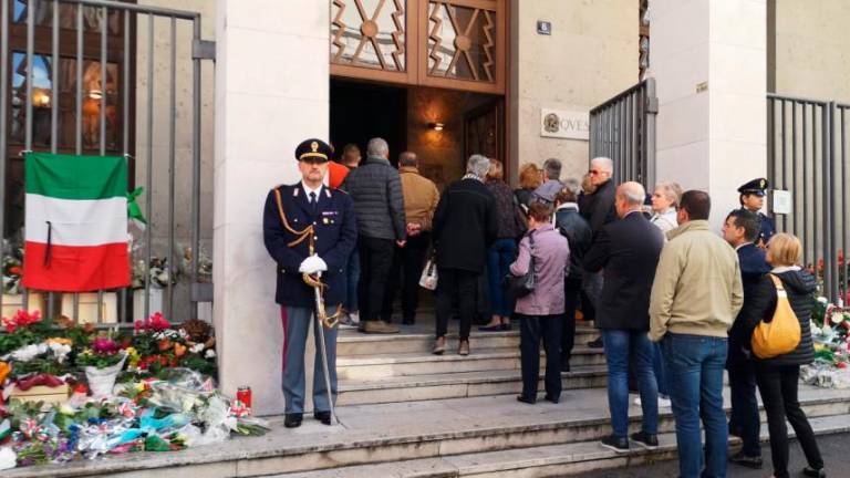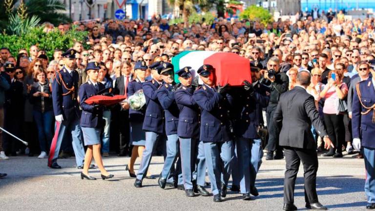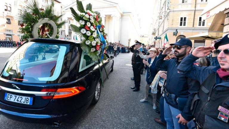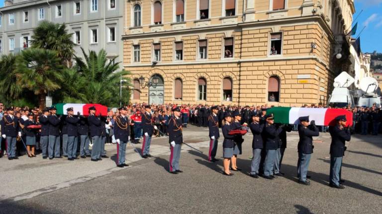 Krsti s posmrtnimi ostanki ubitih policistov Pierluigija Rotte in Mattea Demenega sta pravkar zapustili tržaško kvesturo in tako je krenil pogrebni sprevod do cerkve Novega sv. Antona, kjer bo pogrebna maša. Krsti sta šli skozi špalir, ki so ga sestavljali častni vod policije in drugi kolegi policisti, ob izhodu iz poslopja kvesture pa ju je pozdravilo dolgotrajno ploskanje množice.