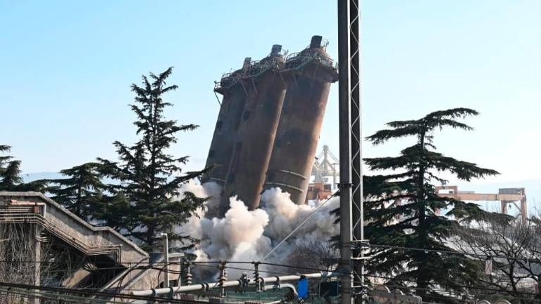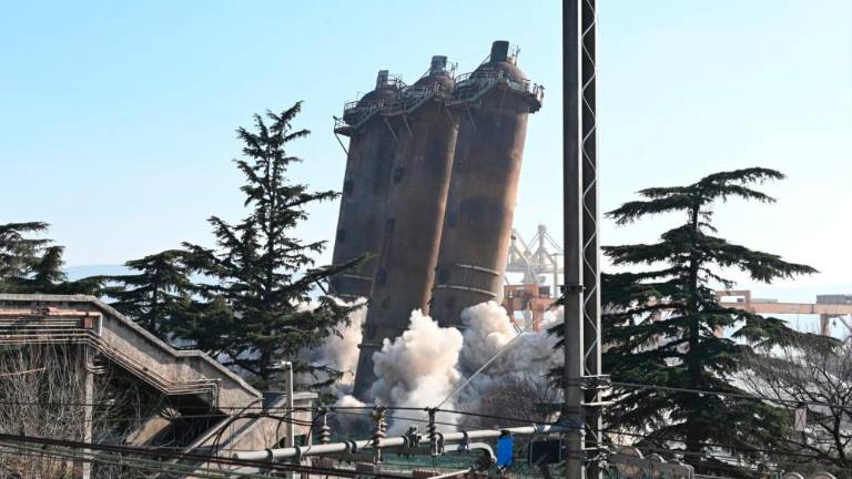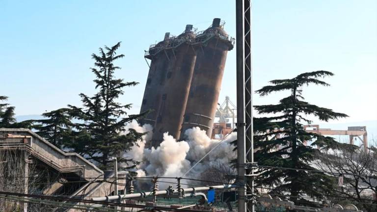 Danes popoldne so razstrelili še zadnje tri objekte nekdanje tržaške železarne. Gre za Cowperjeve toplotne izmenjevalnike , visoke več deset metrov, zgrajene pretežno iz železa. Operacija je trajala slabo minuto. Na območju zdaj ni več sledu nekdanje proizvodne dejavnosti.