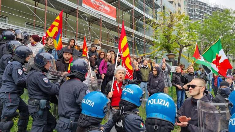 Shod so spremljali policisti, protestniki pa so do tja večinoma hodili po pločnikih. Policisti so jih ustavili pri krožišču pri Ulici Palatucci, kjer je vhod v Rižarno.
