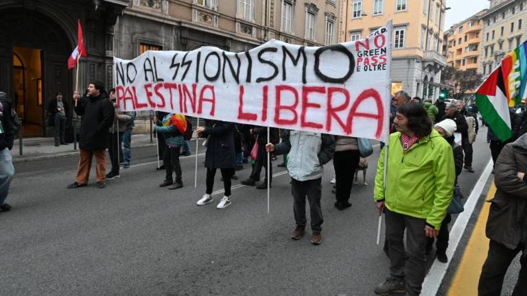 Na čelu protesta je korakala skupina mladih. S transparentom so opozarjali na »genocid, ki je pravkar v teku v Palestini«. Nasploh se je shoda udeležilo veliko število mladih, ki so z gesli skandirali podporo palestinskemu narodu. Potem so bili tu še pripadniki gibanja No Greenpass e oltre, ki so s transparentom povlekli vzporednico med sionizmom in SS-ovci, posebnimi enotami nacistične vojske med drugo svetovno vojno. Zaradi protesta je prišlo do velikih prometnih zastojev.