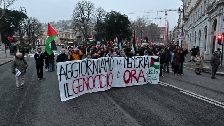 Na tržaških ulicah je danes kakih 300 protestnikov vihtelo palestinske zastave in mahalo s transparenti v podporo palestinskemu narodu. Na pobudo združenj Salaam, otroci oljke in Giovani palestinesi Italia so udeleženci shoda pozivali k »osvoboditvi Palestine izpod sionističnega jarma«.