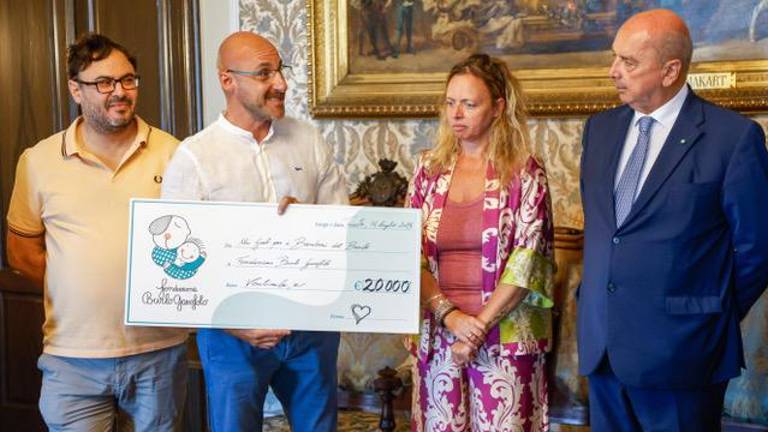 Upravitelji tržaških lokalov L’Approdo, Iera ora Buffet, Al Ciketo in Buffet 3° Tempo so dans v modri dvorani občinske palače predali predsedniku fundacija Gabrieleju Contu ček v višini 20 tisoč evrov. »Podjetniki so z dobrodelnim dogodkom ustvarili povezavo med ljudmi in institucijami,« je povedala odbornica za šport Elisa Lodi. Na predaji so prisotne sprejeli tudi župan Roberto Dipiazza, odbornik za finance Everest Bertoli ter svetnika Massimo Codarin (Bratje Italije) in Corrado Tremul (Bratje Italije), ki sta na dan turnirja nastopila kot nogometaša.