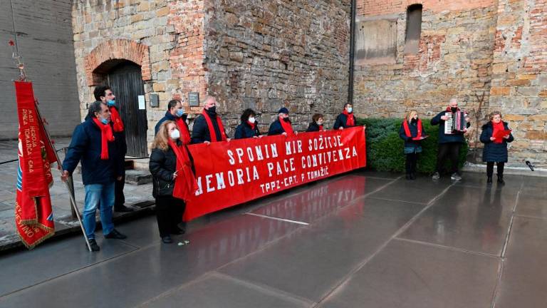 Na dvorišču Rižarne so se včeraj žrtvam vseh koncentracijskih taborišč poklonili tudi člani TPPZ Pinko Tomažič. Nobenega koncerta niso priredili in niti tradicionalne baklade: njihov poklon je bil tokrat intimen in občuten ob glasu harmonike in recitacijah. Nekaj pevcev je nosilo prapor in transparent, ki kliče k spominu, miru in sožitju, ter položilo cvet tja, kjer je nekoč stala krematorijska peč.
