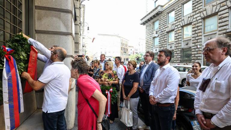 Trmasta prisotnost. S tema besedama bi lahko povzeli včerajšnjo 104. obletnico požiga Narodnega doma v Ulici Filzi. Trmasta prisotnost 38-glave delegacije Slovenk in Slovencev, ki so kljub rdečemu vremenskemu opozorilu prišli na polaganje vencev in svečanost. Trmasta prisotnost Slovenk in Slovencev, ki vztrajamo v Trstu, kljub požigu simbolnega srca naše skupnosti pred 104 leti.