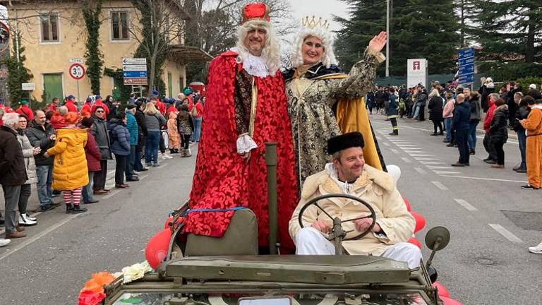 Pustni sprevod se je začel. Sredi vasi sta se oglasila današnja napovedovalca Evgen Ban in Matija Kralj, ki sta za tokratno prireditev izbrala športna oblačila. Pred tribuno je že zakorakala godba Viktor Parma iz Trebč ali Mehičani, ki igrajo pesem Eviva España. Za njimi pa se na posebnem vozilu peljeta letošnja kralj in kraljica pusta.