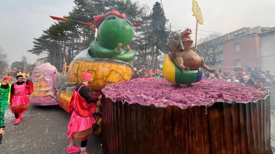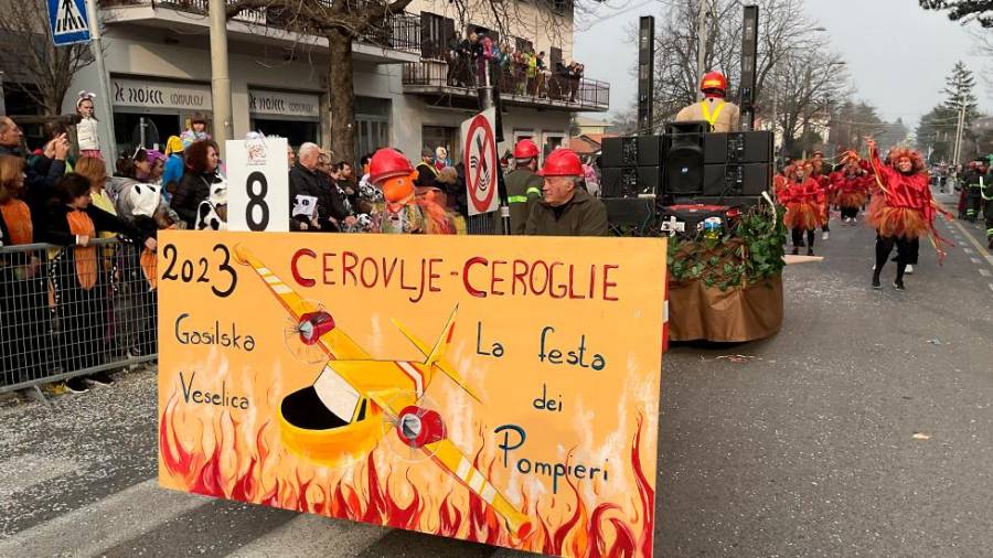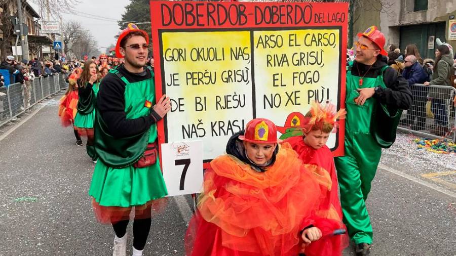 Na vrsti je drugi današnji voz, in sicer iz Doberdoba. Odločili so se, da se spomnijo na težko poletje, ko je marsikje gorelo. Na doberdobskem vozu kraljuje zmajček Grisù iz risanke iz 80. let, ko je zmajček sanjal, da bi bil rad gasilec.