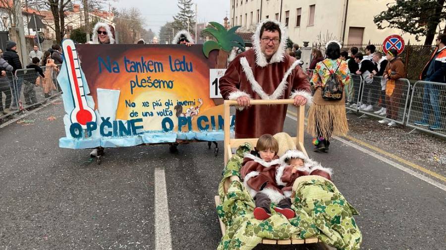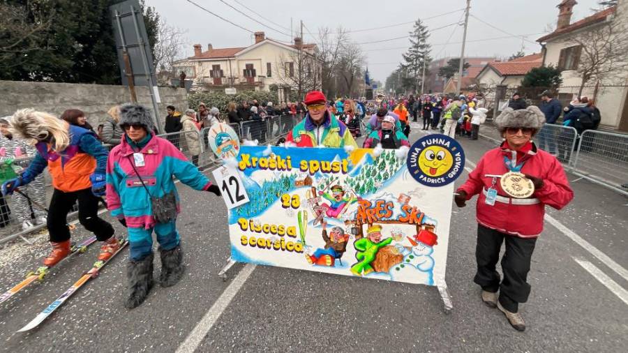 V Gropadi in na Padričah se pustarji spuščajo po Krasu. Pogrešajo sneg, a so se oblekli v smučarje, smučke nataknili na kolesca in se spustili po kraških ulicah. Tako kot tudi s sankami.