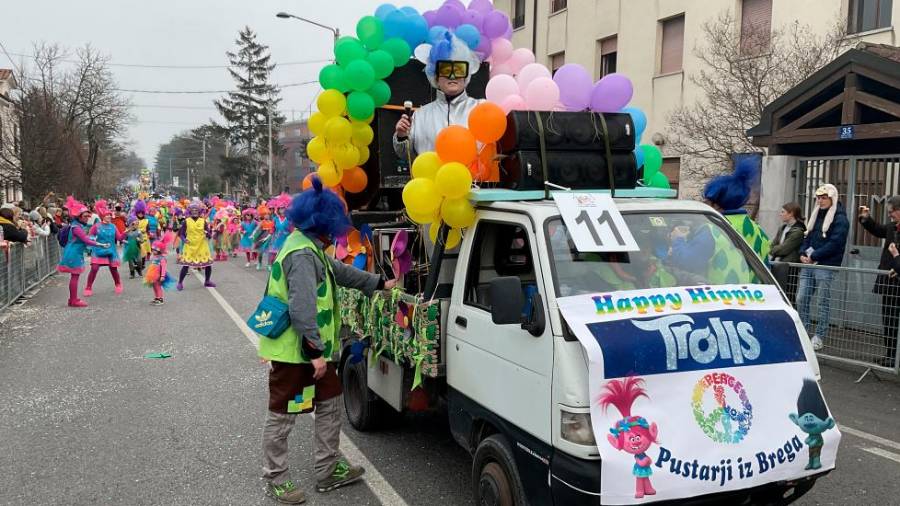 Prihajajo pustarji iz Brega, ki so se oblekli v pisane trole.
