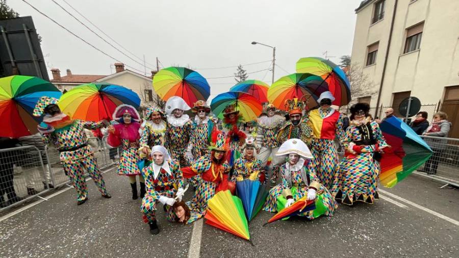 Sledi skupina iz Tržiča z naslovom Jih vidimo vseh barv. Oblekli so se v harlekine, ki plešejo z mavričnimi dežniki, s tem pa želijo opozoriti na vse težave, ki nas tarejo v zadnjem obdobju.
