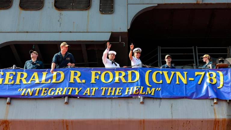 V noči na nedeljo je v Tržaški zaliv priplula ameriška letalonosilka na jedrski pogon Gerald R. Ford. Pred Trstom bo zasidrana predvidoma do četrtka, od nedelje pa njenih približno 4200 članov posadke v več izmenah obiskuje Trst in okolico.