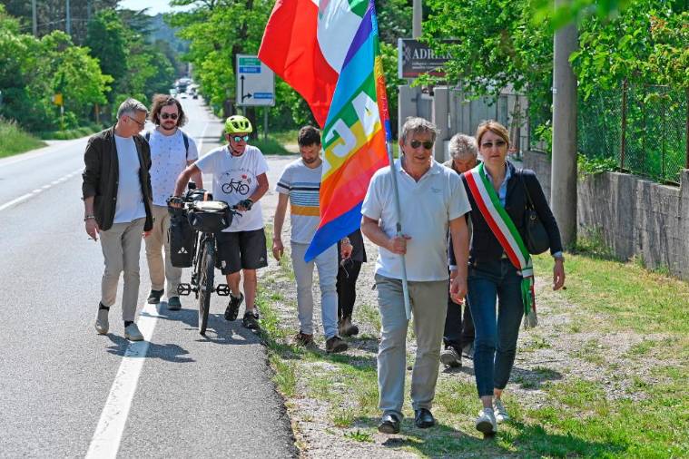Včeraj zjutraj se je na pot podal iz vasi San Giovanni al Natisone. Po krajši nezgodi v Tržiču - nenadoma mu je odpovedalo krmilo kolesa - so ga vaščanke, vaščani in politični predstavniki pričakali v Križu. Pri vaškem spomeniku padlim so ga, poleg predstavnikov borčevske organizacije VZPI-ANPI, sprejeli Martina Budin, novoimenovana podžupanja Občine Zgonik, predsednik rajonskega sveta za Zahodni Kras Pavel Vidoni in župan Občine Devin - Nabrežina Igor Gabrovec. Budin se je Bloisiju iskreno zahvalila in pohvalila hvalevredno pobudo. Dodala je, da »ne bi vsakdo šel s kolesom iz Milana do Rižarne po poteh spomina. Predvsem zadnje čase, ko vse to ni ravno na dnevnem redu«.