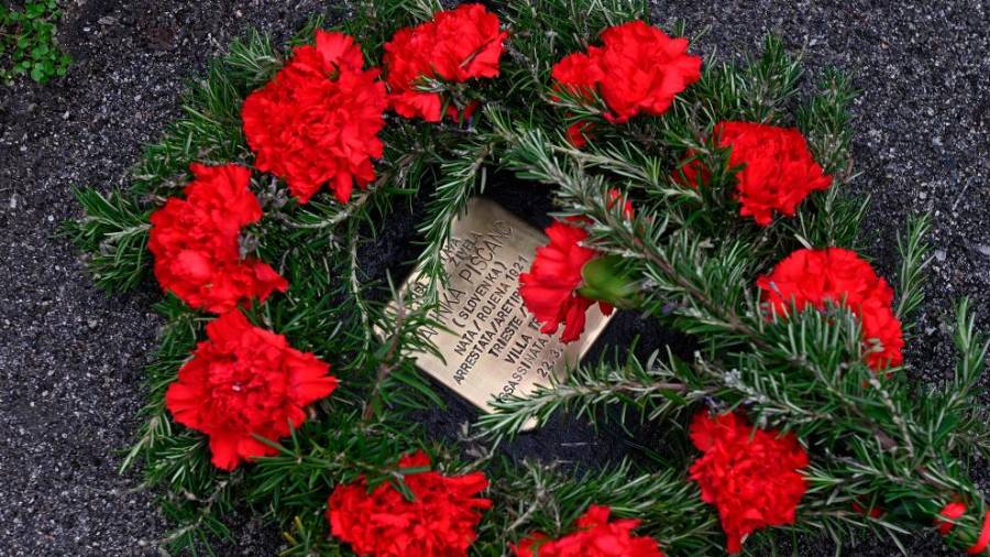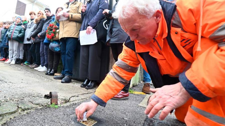Postavili so ga ob bližajočem se dnevu spomina na žrtve holokavsta še s štirinajstimi tlakovci, za katere je poskrbela tržaška judovska skupnost v sodelovanju z Občino Trst združenjem nekdanjih deportirancev Aned in drugimi organizacijami. Dvorišče župnišča je bilo premajhno za vse navzoče. Program so z recitacijami in petjem obogatili dijaki in dijakinje katinarske slovenske nižje srednje šole sv. Cirila in Metoda pod mentorstvom profesorice Kristine Kovačič. Obeležje je blagoslovil domači župnik Giorgio Carnelos.